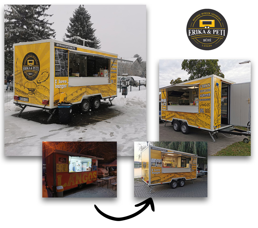 Erika és Peti azzal keresett meg, hogy új külsőt adjak a lángosos, hamburgeres büfékocsijuknak, és átformáljam azt egy modernebb, foodtruck-os stílusú járművé. Azt kérték, hogy a büfékocsi külső megjelenése is tükrözze az általuk kínált ételek frissességét, valamint a hangulatot és lendületet. A foodtruck megjelenése modern legyen, ugyanakkor megtartsa a tradicionális, kedves és barátságos atmoszférát, ami őket jellemzi. Elképzelésük szerint az új megjelenés felkelti majd az emberek figyelmét az utcán, vonzza azokat, akik kíváncsiak az újdonságokra és az ételekre. Kiderült, hogy ez sikerült 🙂